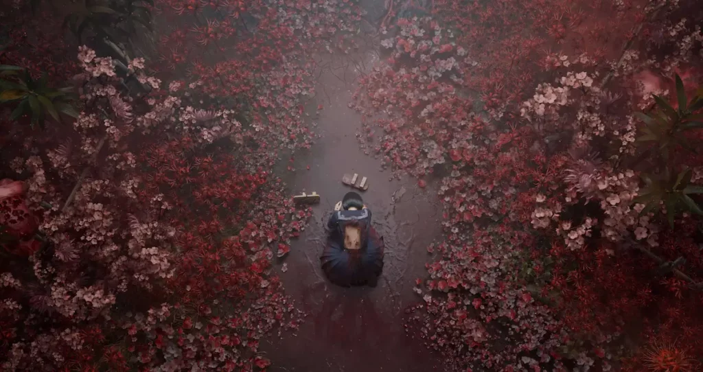 Tel était l’idée centrale de cet épisode. Un concept horrifique japonais selon lequel, lorsque quelque chose est trop beau et parfait, il en devient inquiétant. La beauté étant souvent associée avec la notion de sécurité, le jeu vient volontairement briser cette association. Exit la rouille et la saleté qui caractérisaient les anciens épisodes — bonjour aux lycoris et tenues traditionnelles venus sublimer le propos.